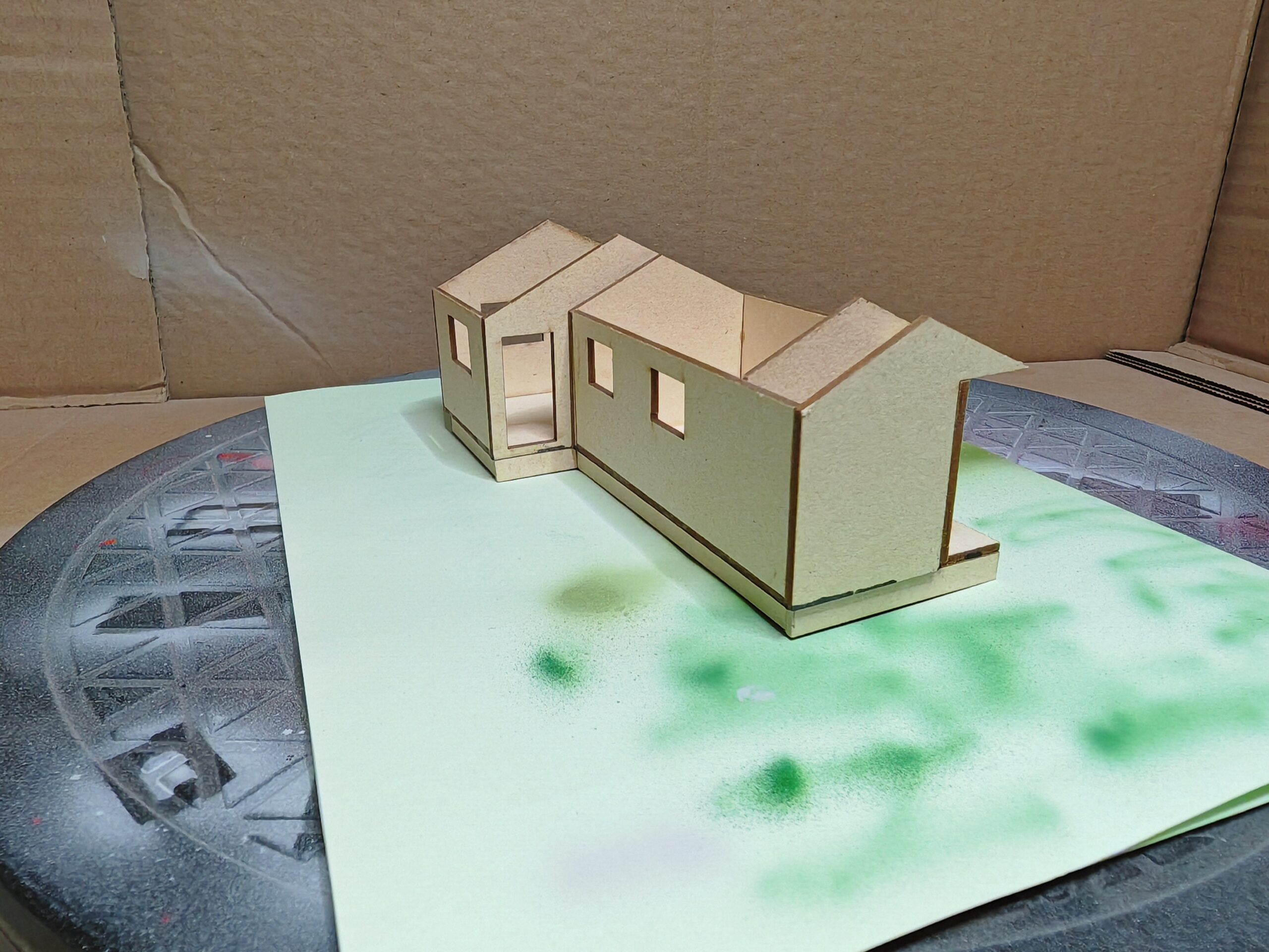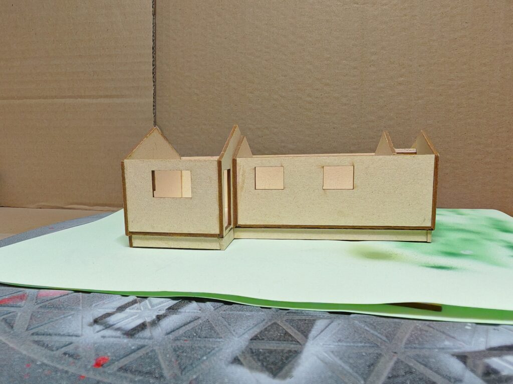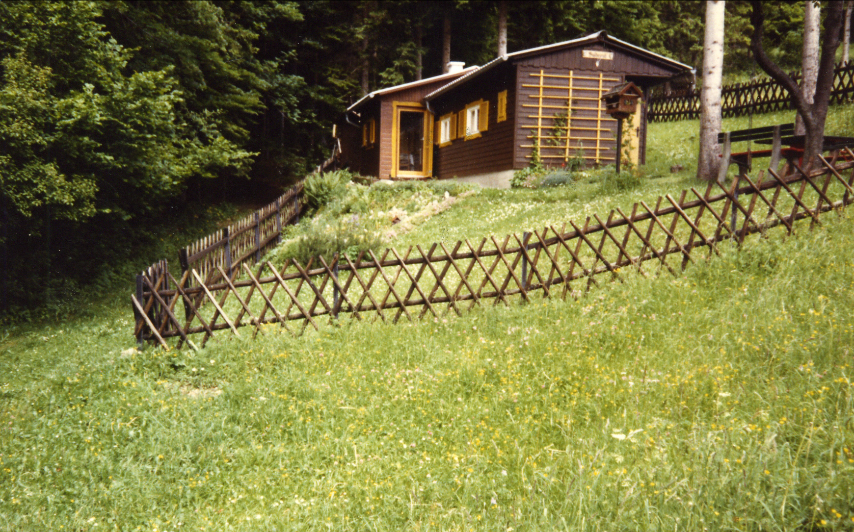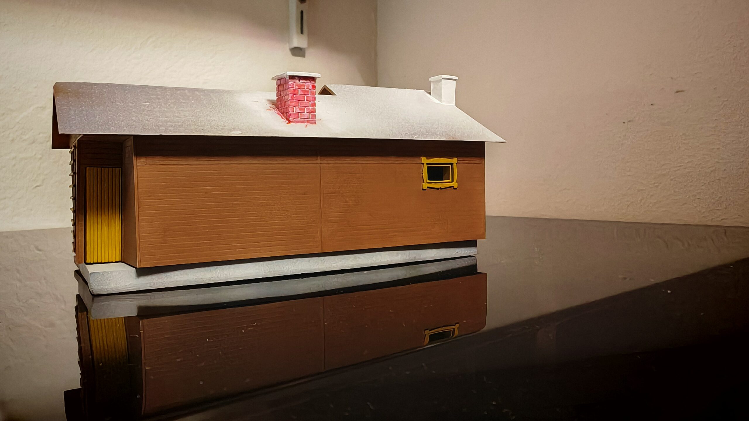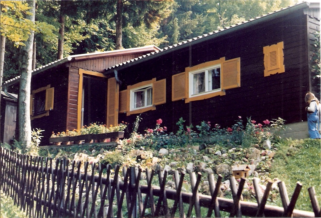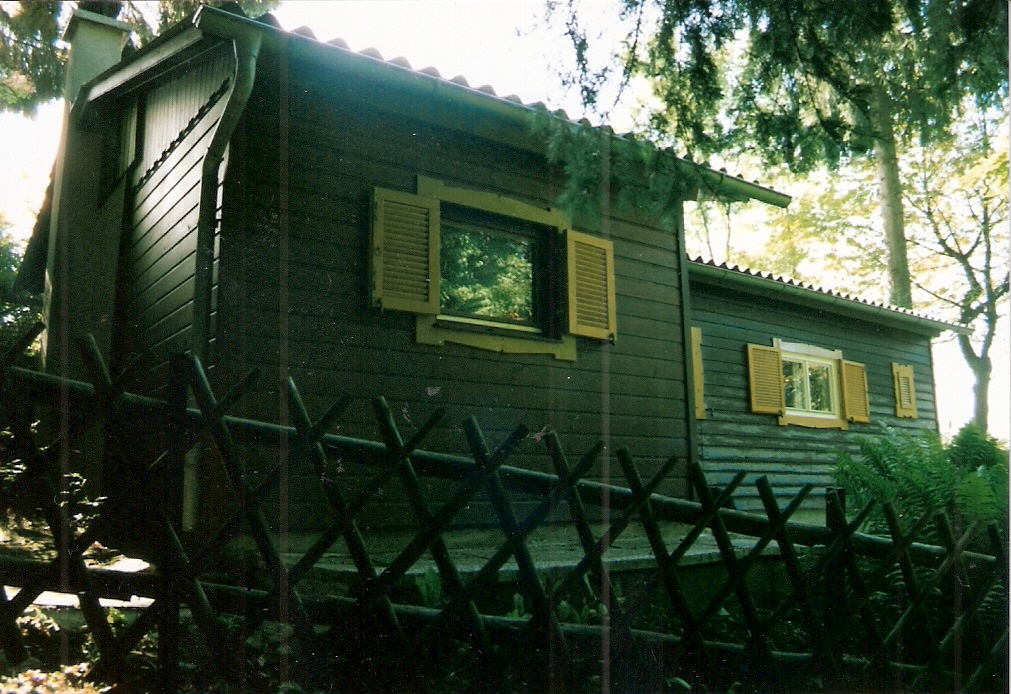 Unsere Kindheit haben wir sehr viel auf dem Rechberg verbracht. Dort hatten meine Großeltern ein Wochenendhaus. Leider wurde sie später aus Zeitmangel verkauft. Wir wollten sie aber auf unserer Anlage verewigen. So habe ich mich auf die Suche nach Bildern gemacht. Sogar den original Plan habe ich bekommen. damit habe ich in alter manier begonnen ein Kartonmodell zu erstellen. Ich habe aber schon recht schnell gemertkt das dieses Unterfangen an Geduld und Zeit scheitern würde. hunderte von Brettern hätten geklebt und geschnitten werden müssen.