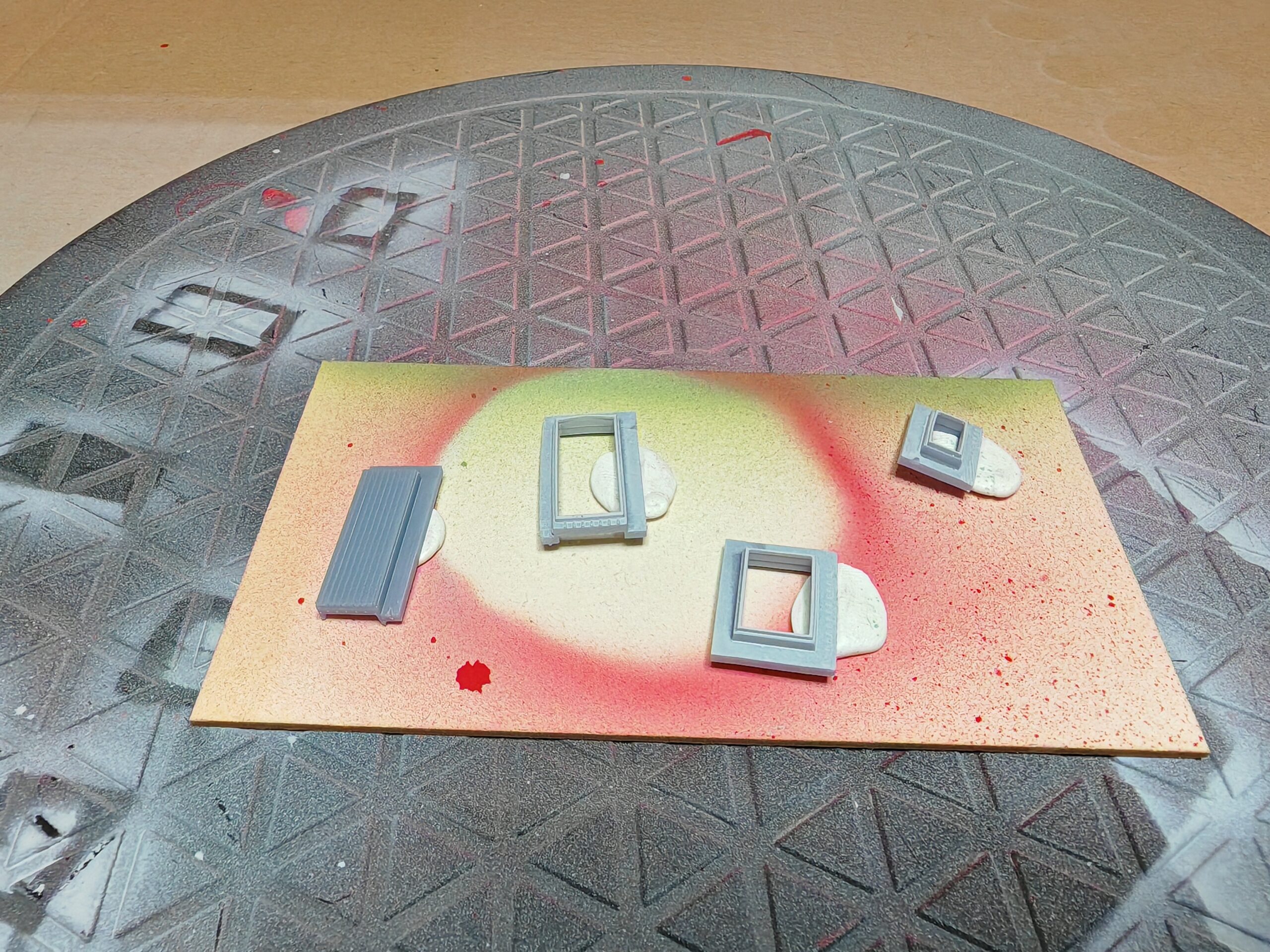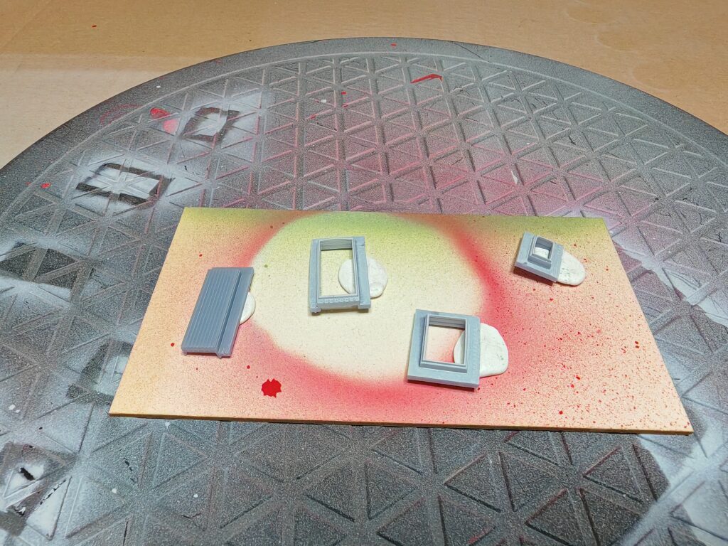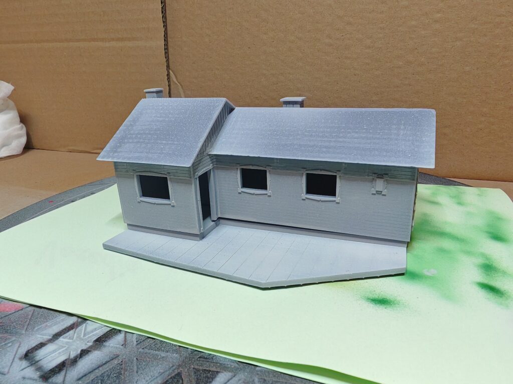 Weil das Ergebnis einfach nicht zufriedenstellend war, andere Drucke ebenfalls nicht funkionierten habe ich mich auf die Fehlersuche gemacht. Zum einen habe ich die Einstellungen des Druckers verbessert. dann habe ich mir eine Magnetplatte gegönnt. Die musste natürlich erst neu kalibriert werden. Was das Druckergebnis massiv steigerte. Dann habe ich die Fenster und Türen direkt in das Gebäude integriert. Ebenso die Fensteläden habe ich gleich mit dem Gebäude verbunden. Das Ergebnis ist durchaus zufriedenstellend.