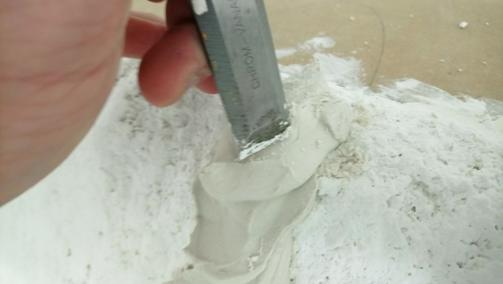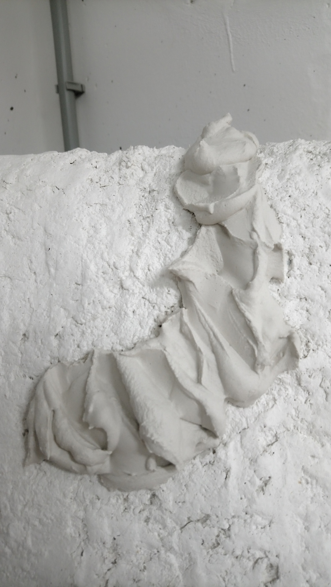 Hier sieht man gut den Unterschied. Auf der linken Seite ist die Masse nur mit Gips. Es bleibt eine stark bröselig wirkende Struktur.