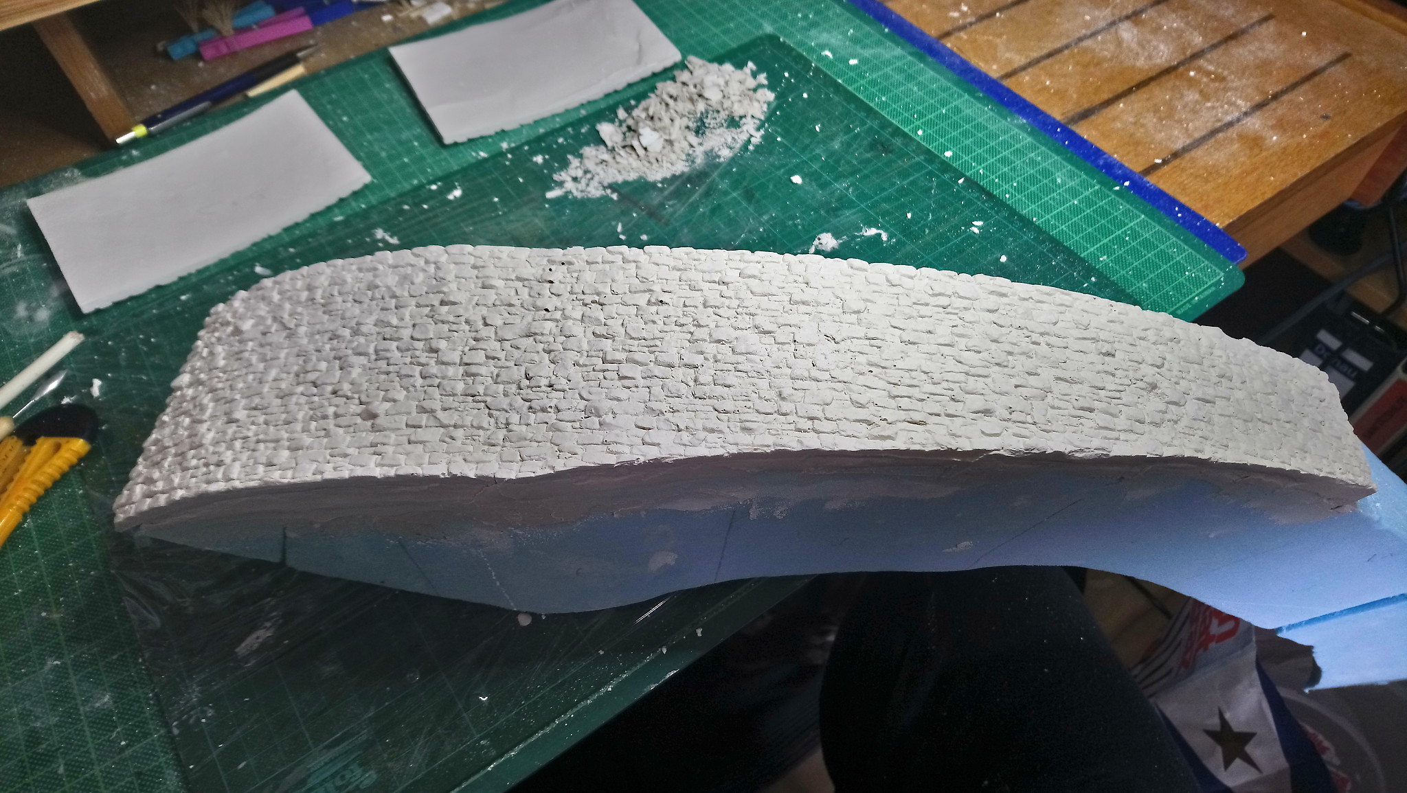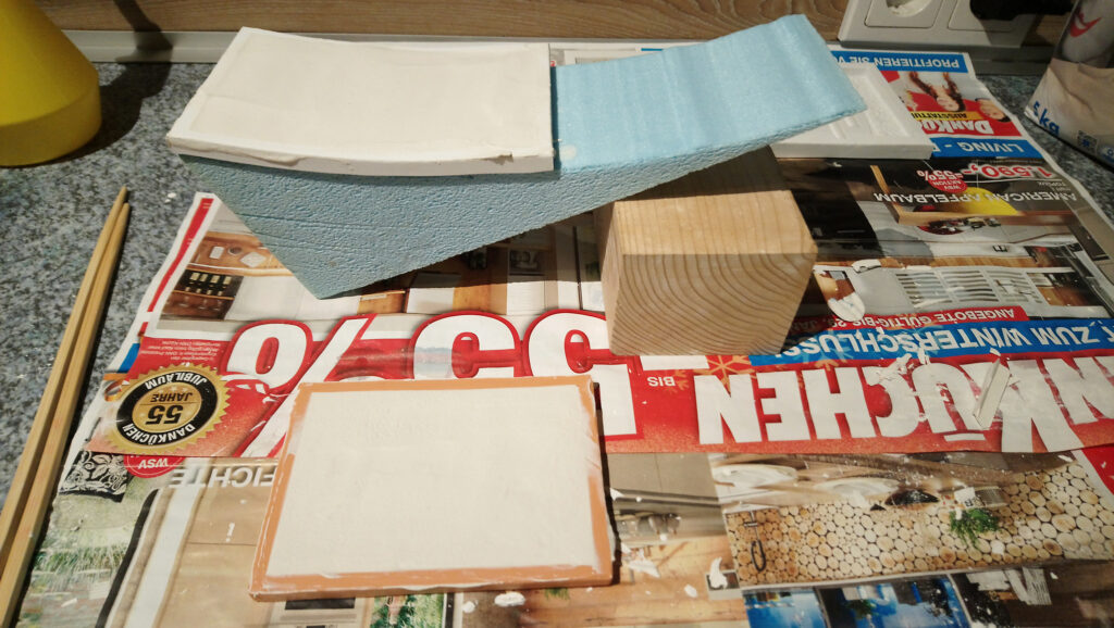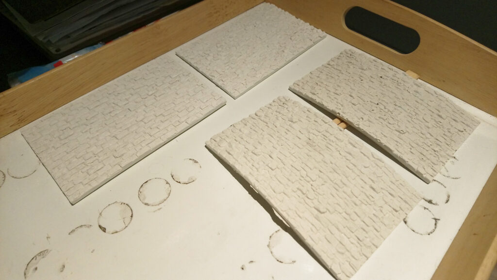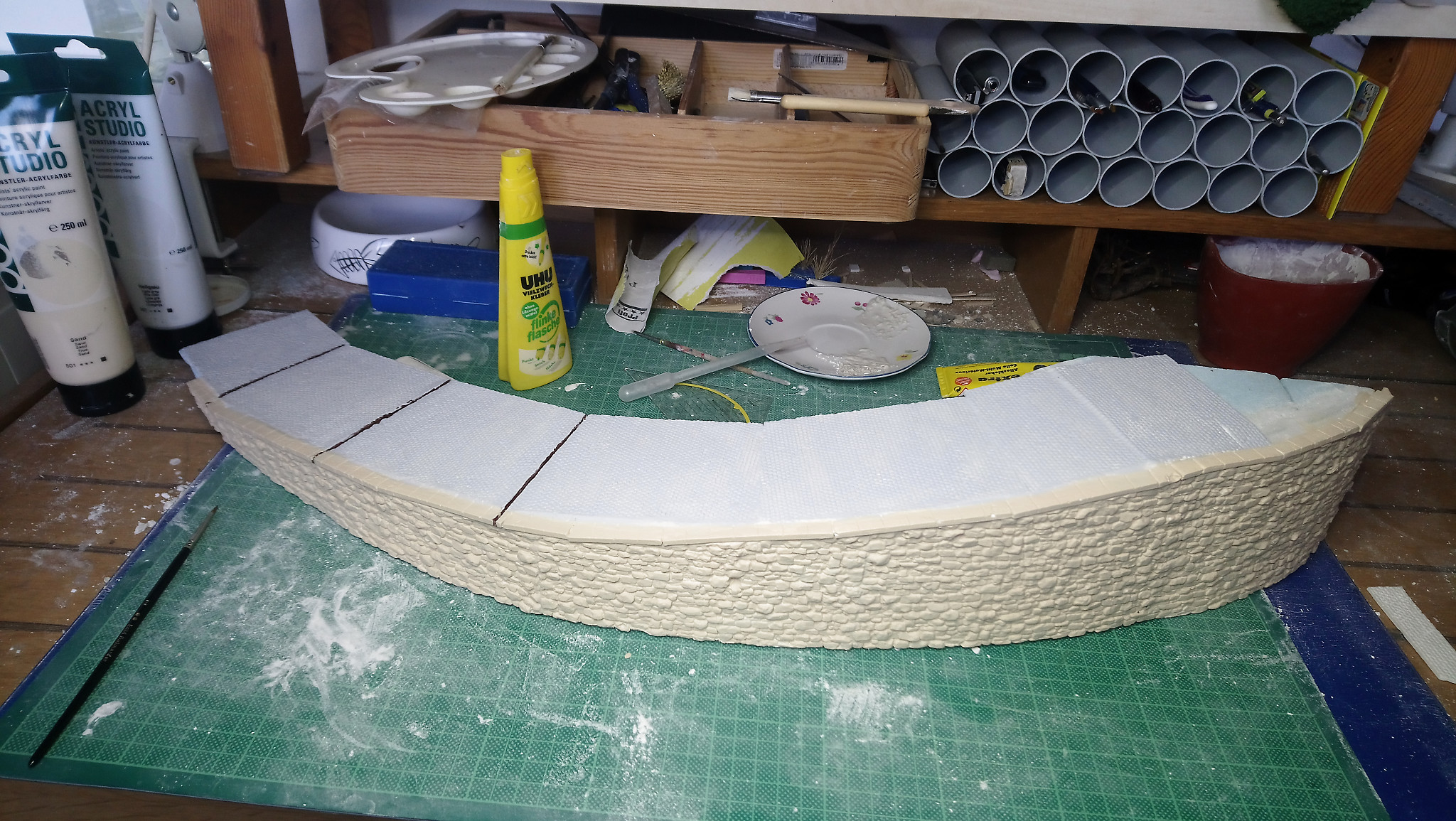 Zu erst mussten reichlich Mauern aus Gips gefertigt und in die richtige Rundung gebracht werden. Ebenfalls aus Gips wirde dann das Pflaster für die Straße hergestellt.