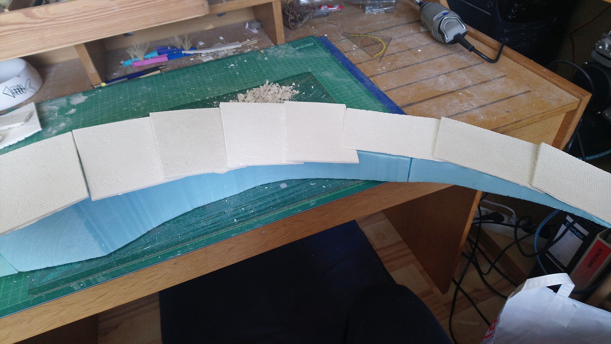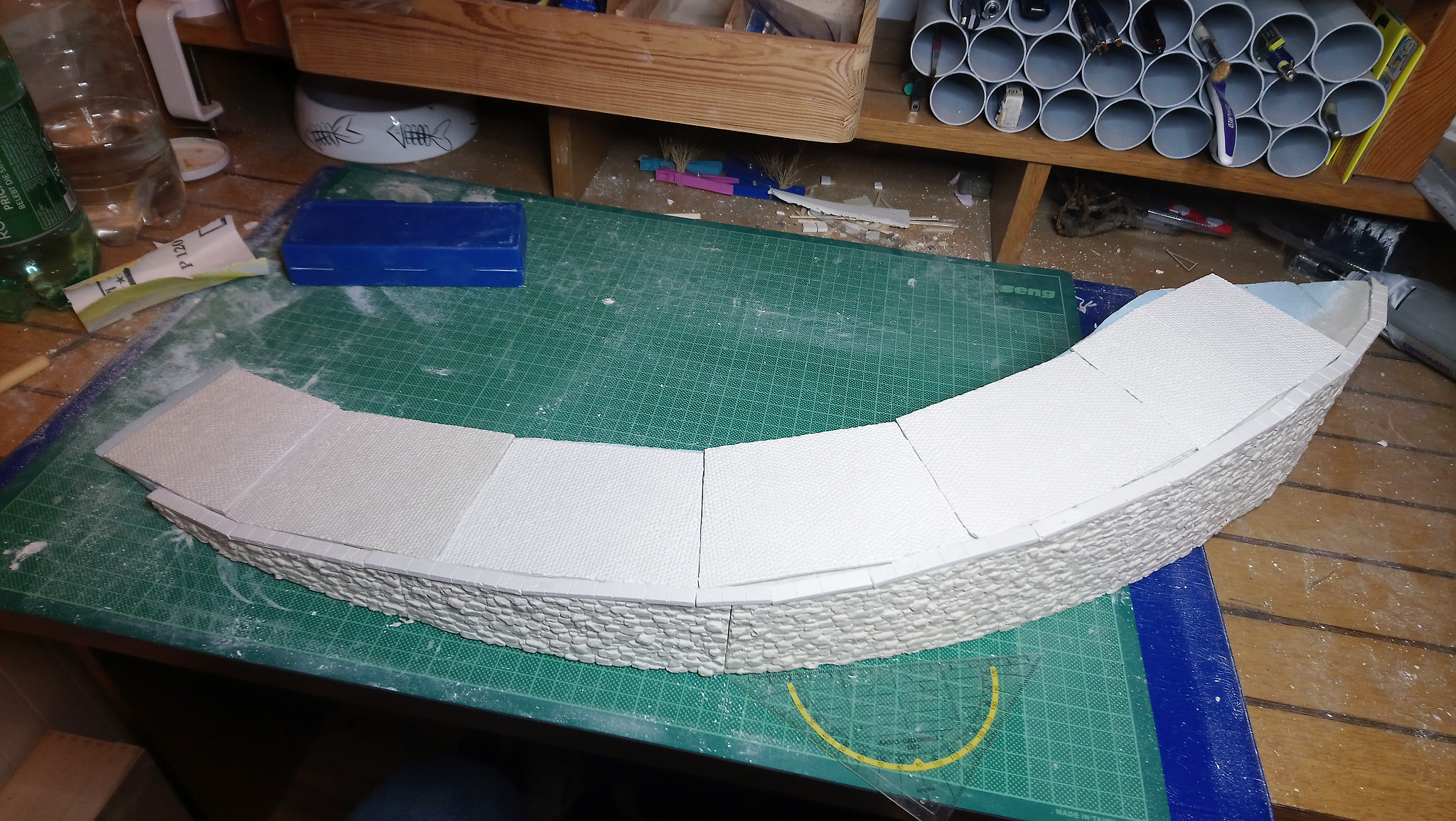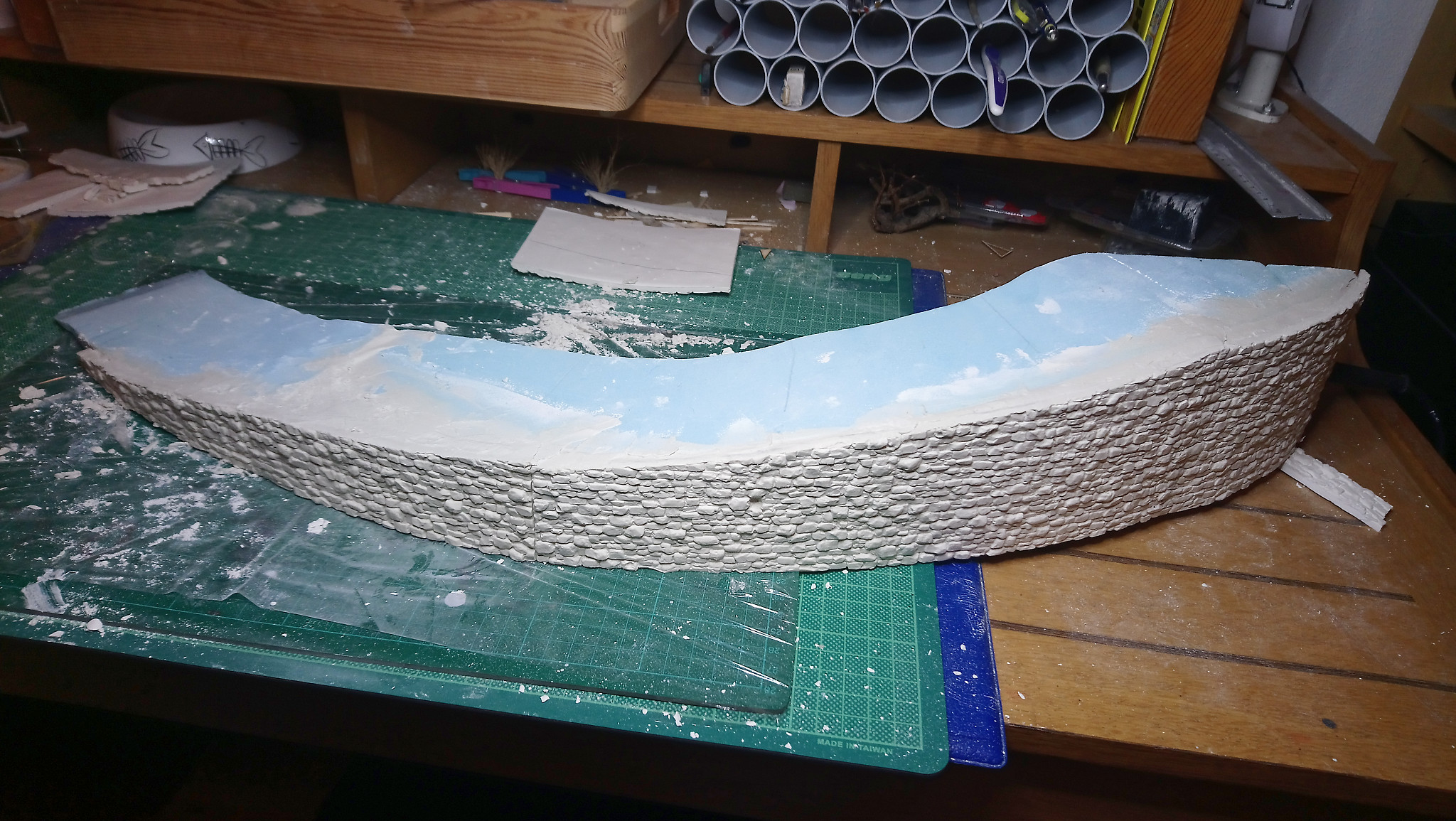 Zu erst mussten reichlich Mauern aus Gips gefertigt und in die richtige Rundung gebracht werden. Ebenfalls aus Gips wirde dann das Pflaster für die Straße hergestellt.