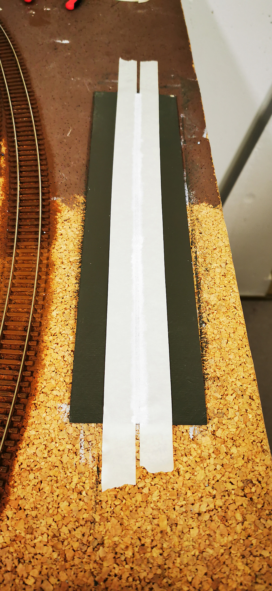 Der Platz für den Tunnel wurde festgelegt. ebenfalls die führung der Straße. Die habe ich dann zu mir nach Hause mitgenommen um sie zu bauen.